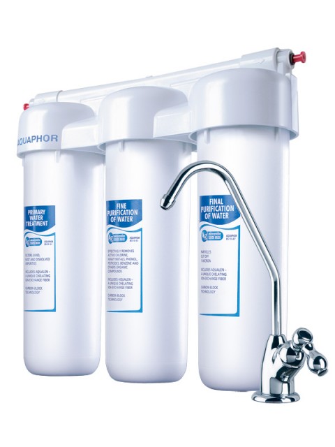 При этом одного комплекта картриджей Вам хватит надолго: Аквафор Трио Fe может очистить более 7000 л воды! Семье из 3 человек этого хватит на 1,5 года ежедневного использования. Входящий в комплект фильтра отдельный кран упрощает набор чистой воды и станет прекрасным украшением Вашей кухни. Его современный дизайн легко впишется в интерьер, а комплект прокладок поможет избежать протечек. В целом, надежность фильтра для воды Трио Fe обеспечивается сверхпрочным корпусом из долговечного, экологически безопасного пластика пластика европейского производства.